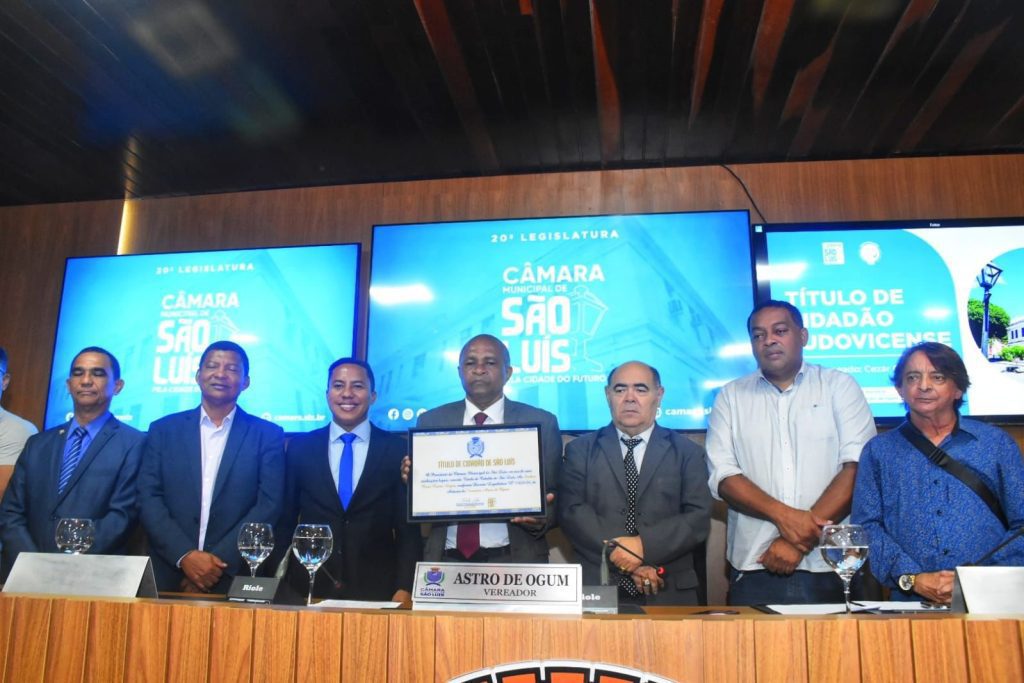 Em uma solenidade bastante prestigiada e carregada de emoção, na tarde desta quarta-feira(17), o ex-vereador César Castro Lopes, conhecido como “Cesar Bombeiro”, tornou-se o mais novo cidadão de São Luís. A sessão solene, presidida pelo autor da proposta – vereador Astro de Ogum(PCdoB) foi realizada no Plenário Simão Estácio da Silveira.